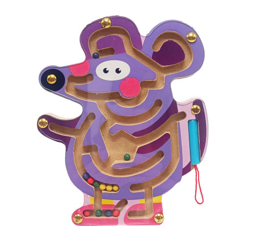 Дерев’яний магнітний лабіринт, мишка — цікава та корисна розвиваюча іграшка для дітей від 3 років. Завдання дитини — перемістити елемент по доріжках лабіринту, щоб довести його до потрібного місця на основі. Гра допомагає розвивати логіку, дрібну моторику, уважність і посидючість, а також у процесі можна вивчати кольори